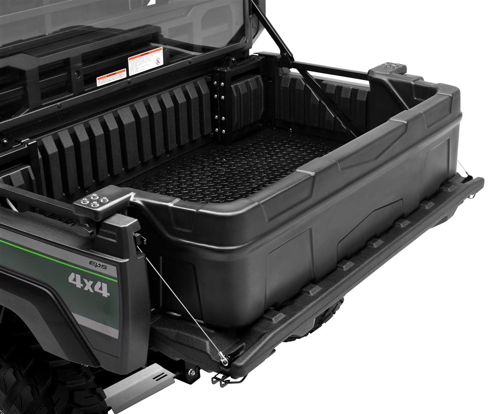 Die Nutzfläche des MULE PRO-DX bietet reichlich Platz. Die Maße betragen 1.085 mm in der Länge x 1.363 mm in der Breite x 279 mm in der Höhe im Zwei-Personen-Modus oder 560 mm x 1.363 mm x 279 mm im Vier-Personen-Modus.