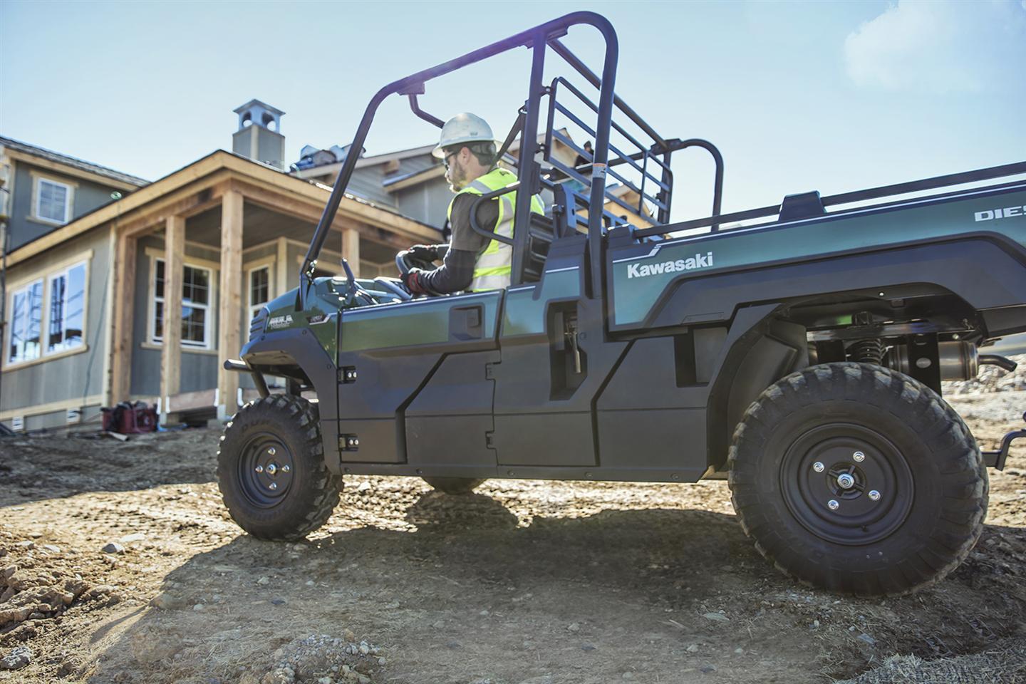 Abgesehen von seiner Anpassungsfähigkeit an die gebräuchlichen Kraftstoffarten vor Ort überzeugt der leistungsstarke Dreizylinder-Dieselmotor des MULE PRO-DX durch hervorragende Lastentransportfähigkeiten. Die herausragende Startleistung und die unkomplizierte, robuste Bauweise sind weitere signifikante Vorzüge dieses Diesel-Triebwerks. Das Fahrzeug erreicht eine Höchstgeschwindigkeit von bis zu 48 km/h.