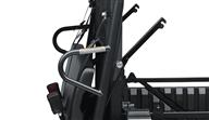 Die Sitzbank lässt sich hochklappen, die Ladeflächenwände können verschoben und fixiert werden. Schließlich wird die Sitzbank wieder gesichert, und somit kann der Fahrzeugmodus von vier auf zwei Personen umgestellt werden, wodurch zusätzlicher Platz in der Ladefläche geschaffen wird.