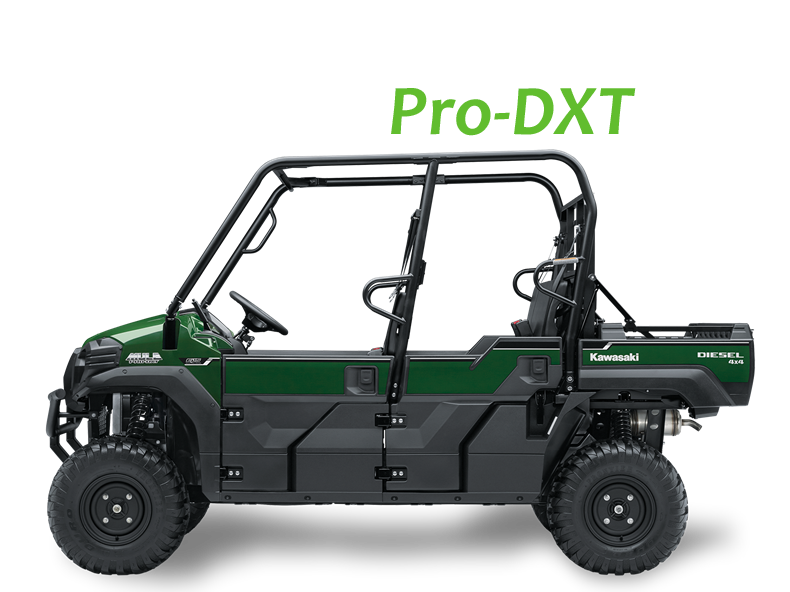 Mit dem Viersitzer Diesel MULE PRO-DXT haben Sie das ideale Nutzfahrzeug für Landwirtschaft und Industrie gefunden. Dieser Viertakt Dreizylinder PRO-DXT führt die Kawasaki MULE-Serie souverän an.