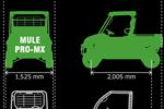 Die herausragende Offroad-Performance der MULE PRO-MX wird auch durch ihre beeindruckenden Anfahr- und Abfahrwinkel von 67 Grad bzw. 63 Grad unterstützt. Um das Risiko von Kontakt mit den Stoßfängern oder dem Streifen des Hecks beim Befahren steiler Hänge zu minimieren, wurden die Räder so nah wie möglich an den Stoßfängern positioniert, wodurch der Karosserieüberhang reduziert wird.