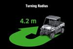 Der geringe Wenderadius von 4,2 Metern macht das Navigieren durch enge Waldwege und auf Trailstrecken besonders einfach.
